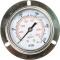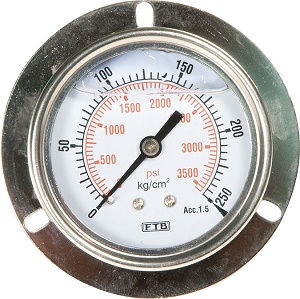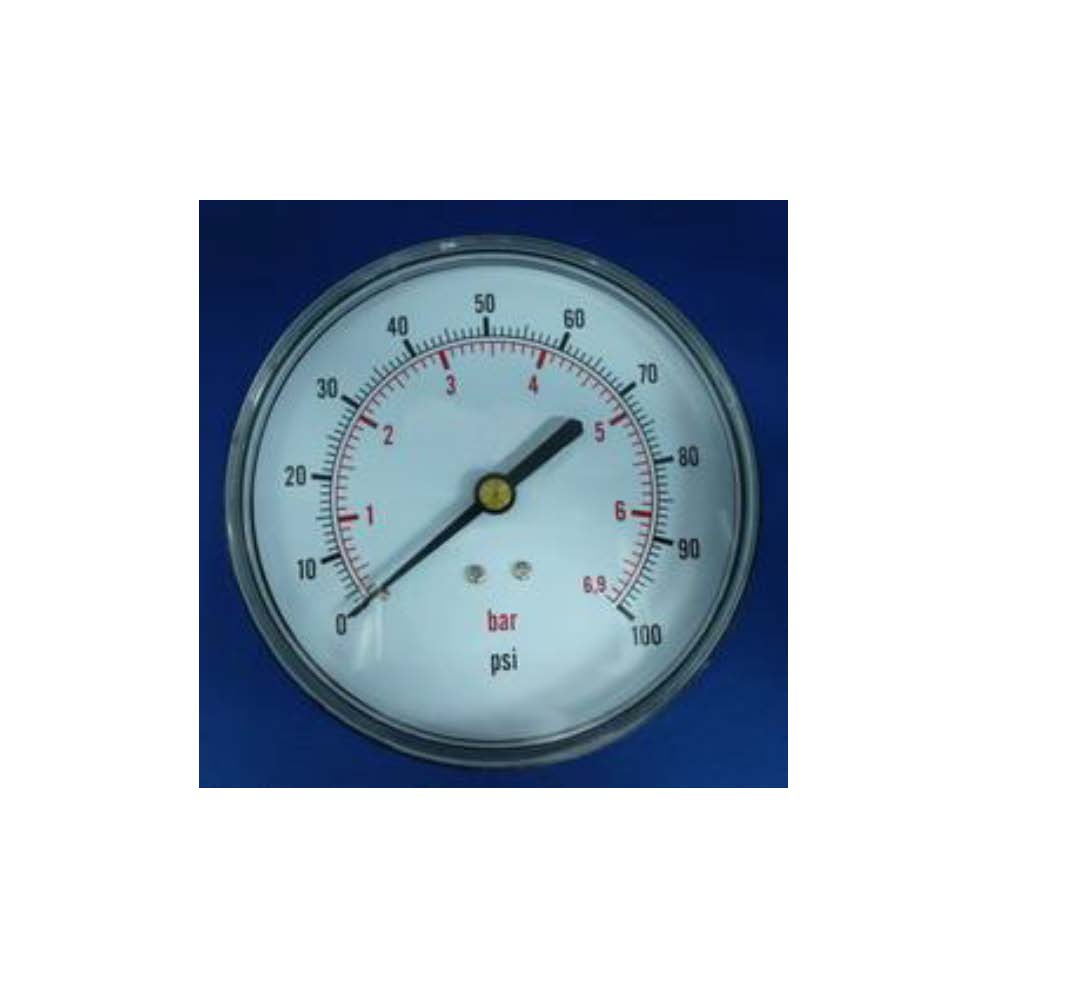 Pressure gauge, instrument for measuring the condition of a fluid (liquid or gas) that is specified by the force that the fluid would exert, when at rest, on a unit area, such as pounds per square inch or newtons per square centimetre.